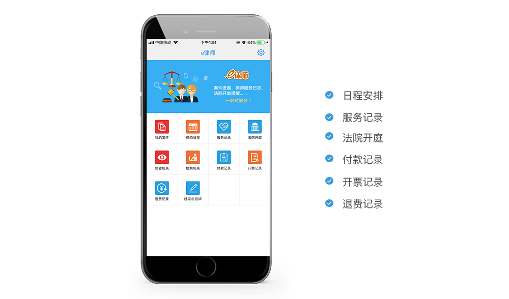 案件進展、律師工作日志、法院開庭提醒,一站式服務!