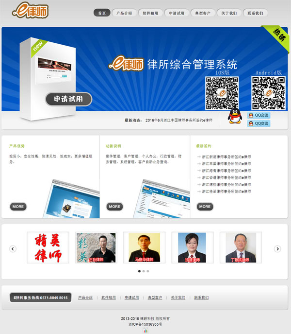e律師技術團隊開發的律師事務辦公管理系統,與眾多律師事務所共同協作,在各位律師精英的大力支持下,經一年多的試運營,律師事務辦公管理系統命名為“e律師”律所綜合管理系統,同時,e律師官網正式上線,網址:m.oktmr.com。
