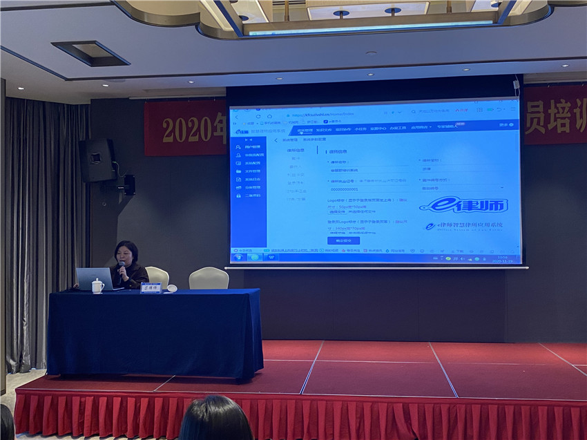 2020年11月19日,浙江律聯信息科技有限公司受杭州市余杭區司法局邀請,參與由余杭區司法局主辦的:2020年余杭區法律服務行業行政人員培訓會。本次參與培訓會的律所共計50多家,共同推進律所信息化建設完成工作,律所行政人員交流事務匯報。律聯科技客服部經理陳麗珍出席了本次培訓會活動并為各律所行政人員講解系統操作流程及問題解答。