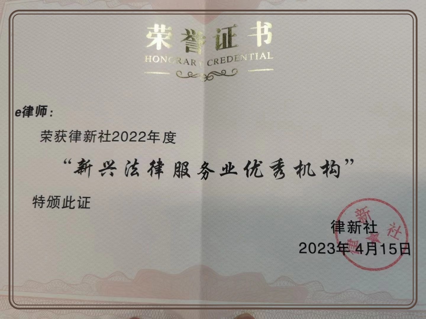 喜報|e律師榮獲律新社2022年度“新興法律服務業優秀機構”